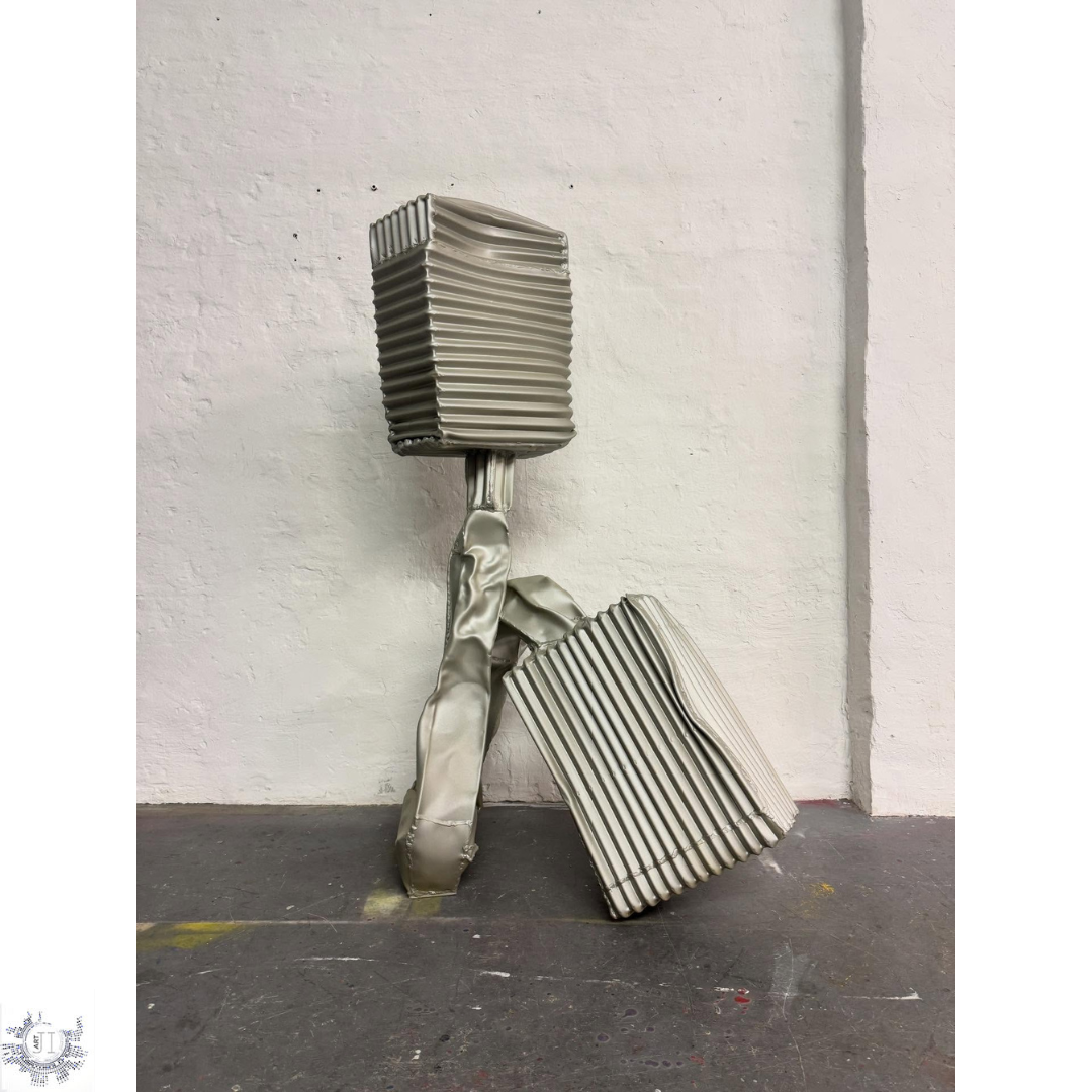 Aluminum, lightweight yet resistant, endlessly recyclable yet costly to produce, sits at the center of her practice, where Anna exploits its contradictions. Her sculptures stand and lean like figures under pressure, while abstraction, in her hands, brushes against economics, humor, and the physical limits of endurance.