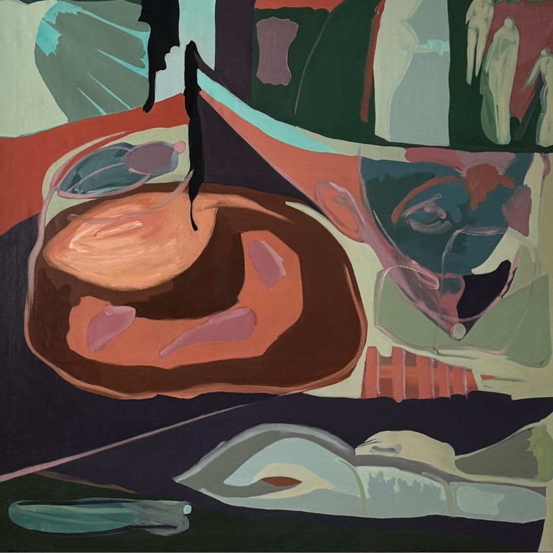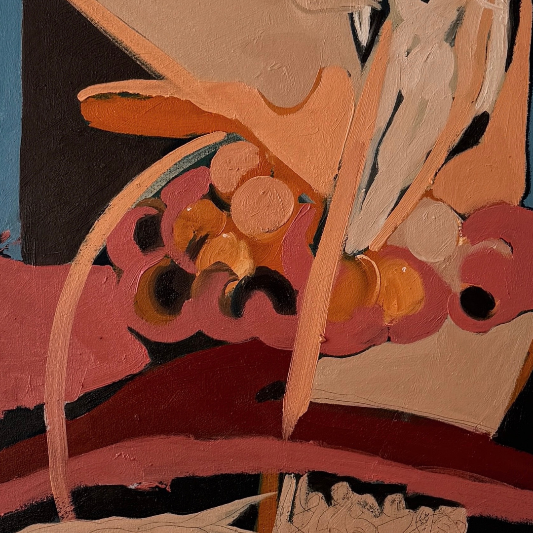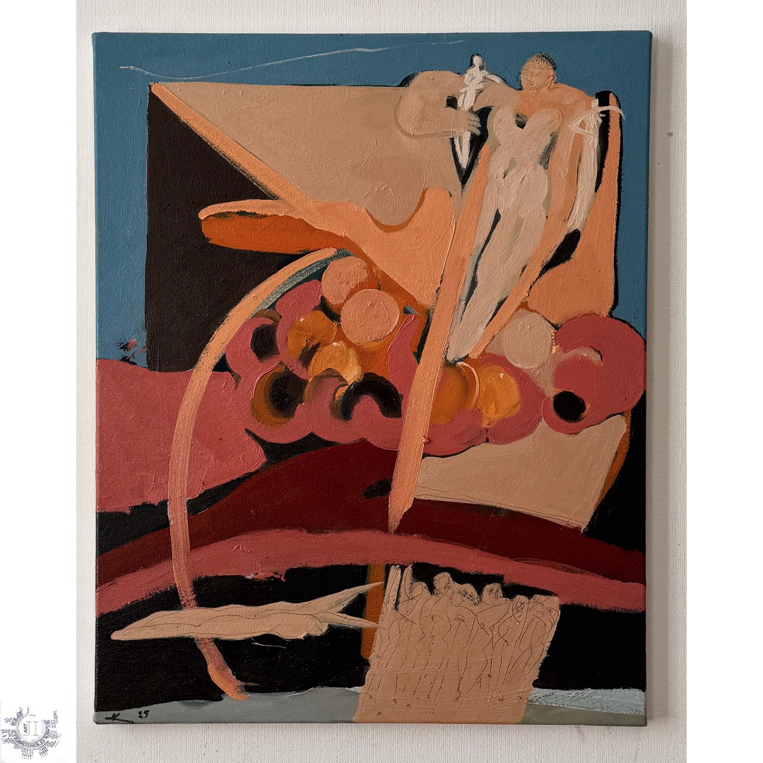 Based in Kyiv, the multidisciplinary artist works across painting, graphics, and sculpture, weaving together fragments of memory, dream, and personal mythology. His paintings, filled with vivid colors, fractured figures, and abstract architectures, feel like scenes glimpsed in a half-remembered dream, at once personal and universal.
